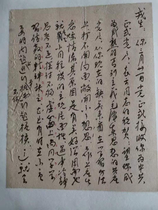 “戎生,你这几年来,学习进步一定很好。我们天天在这里希望你进步……我们身体很好,工作也很顺利,不要挂念。祝你和你弟弟身体好,并祝进步!”