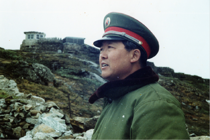 1987年谭戎生在乃堆拉哨口留影。(受访者供图)