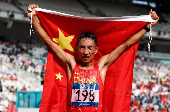 ↑2018年第18届亚运会田径男子马拉松赛中