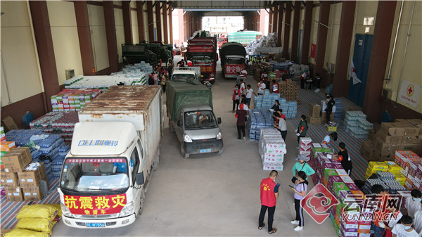 救灾物资当天到达当天分发“我已经连续3天3夜在这里战斗。”24日上午,记者来到漾濞县救灾物资储备中心,一身疲倦、声音嘶哑的漾濞县发改局副局长蒙红军介绍了震后救灾物资接收发放情况。21日晚强震发生后,蒙红军第一时间赶到平坡救灾物资储备点,连夜将413顶账篷发往震中所在地秀岭村。22日凌晨3:30,第一批救灾物资到达后,蒙红军就一直坚守在漾濞县救灾物资储备中心,组织应急物资的接收发放。“救灾物资当天到达当天分发。22日到达和分发的物资最多,车辆川流不息,大车小车三轮车全部挤满。23日志愿者最多,在储备中心搬运物资的志愿者多达五六百人。”蒙红军介绍,22日开始又增加了马厂救灾物资集结点,救灾物资直接发放到了乡镇。正在漾濞县救灾物资储备中心忙碌的漾濞县红十字会常务副会长霍灿军已经4天3夜没睡觉。地震发生后,他就一直忙着搜集受灾情况,将县红十字会1100包“博爱家庭包”、1000件冲锋衣、300顶帐篷等救灾物资送到灾区,联系接收社会各界救灾捐赠。“我们红十字会接收到的救灾物资,共有应急食品、应急物品20多个品种,当天接收、当天发放,首先保证苍山西镇16个村委会和应急部门。”