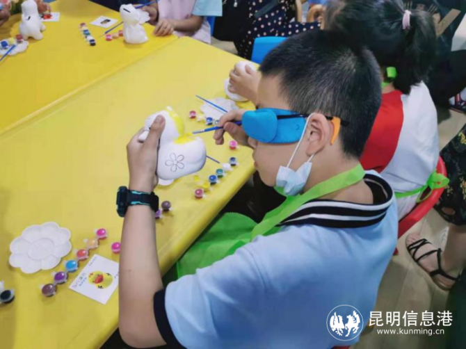 “我的孩子有点特殊,他患有轻度的智力残疾、斜视和弱视,近半年来,他一直在爱尔眼科进行免费的视觉训练,目前他的右眼视力已从0.6提升到了0.8,立体视觉也从刚开始的完全没有,到现在一点点地恢复。真的非常感谢西山区残联给到我们家庭的资助,也感谢昆明爱尔眼科医院给予孩子这么好的治疗。”王女士表示,看着孩子在其他小朋友的帮助下一起自如地涂鸦,一起做如此精细的活儿,她非常感动,“通过这个寓教于乐的科普活动,孩子不仅学到了眼科知识,而且还更好地融入到了同龄人中。”