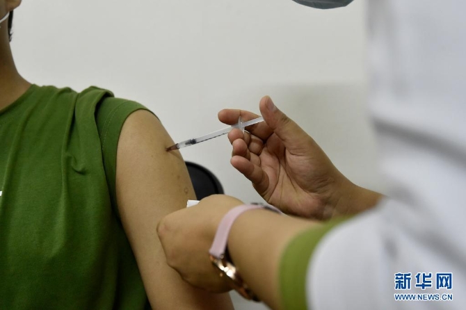 5月25日,医学院的学生在孟加拉国达卡接种中国国药新冠疫苗。新华社发