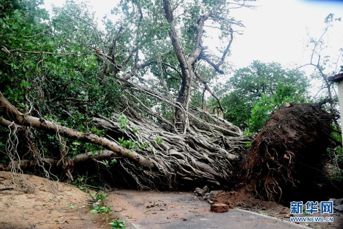 这是5月26日在印度巴拉索尔拍摄的被风刮倒的树木。新华社发