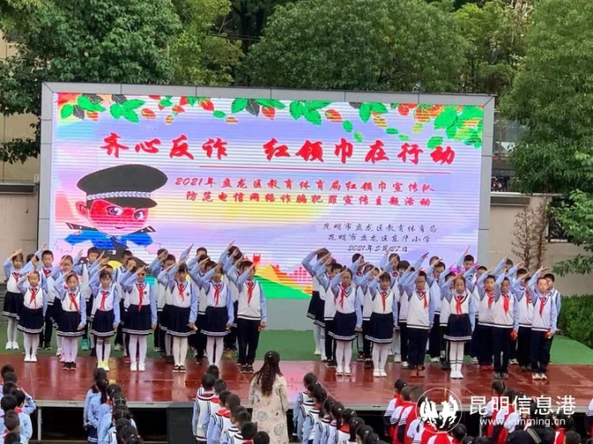 昆明信息港讯 记者李红鸾 随着网络、电信等通信技术的广泛应用,很多不法分子利用电话、短信、网络等通讯工具,进行电信网络诈骗犯罪活动,给广大学生造成很大的经济损失。为有效遏制信息诈骗犯罪高发态势,切实维护学生利益,5月27日,盘龙区教育体育局红领巾宣传队防范电信网络诈骗犯罪宣传主题活动在东华小学田园校区举行。