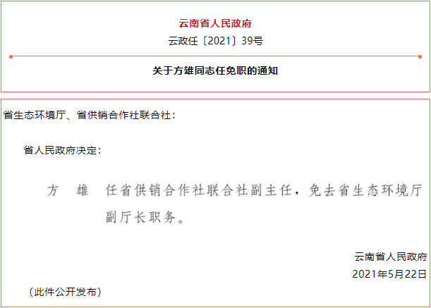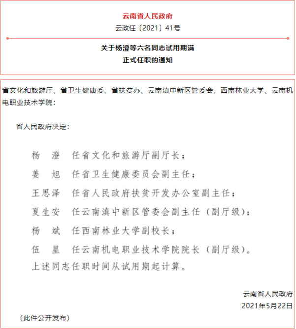 云南省人民政府发布一批任免职通知