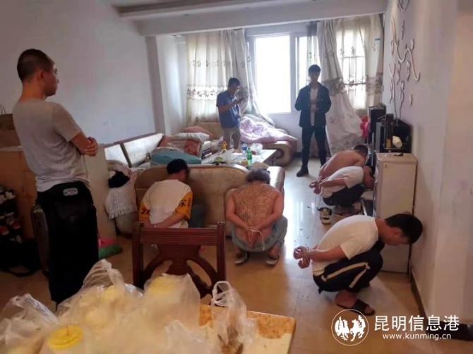 5月21日,楚雄市公安局多警种合成作战,在楚雄市东瓜镇某小区出租房内将该犯罪团伙成员李某等5人抓获。