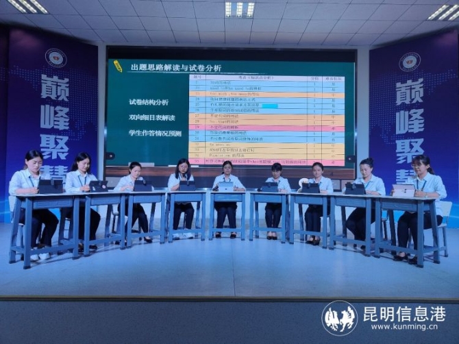 在“智慧教研”情景展示环节,文山第一初中北校区英语组的10位老师齐聚舞台,再现了考后对考情进行分析的场景。平均分、优秀率、学业等级分布……除了这些常规数据,老师们还需要根据各自代课班级的实际情况,提炼出不同的关注点进行分析和反思。此外,智学网大数据精准教学系统也对老师后续教学设计提供了方向和思路。“这样的教学形式,对于老师也是一次练兵,通过大数据的技术应用,更直观的看到教学效果。”一位老师赛后说道。