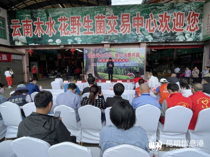 昆明信息港讯 记者龙泉积 实习生杞青蓉 5月28日,官渡区2021年野生菌食用安全宣传活动在云南省木水花野生菌交易中心举行。活动通过向市民发放宣传材料、讲解等多种形式科普食品安全、野生菌中毒防控、野生菌食用安全等知识,让市民增强自我保护意识,提高防范野生菌中毒的能力,树立起健康饮食理念。