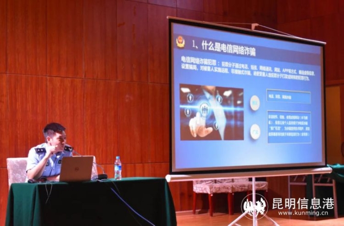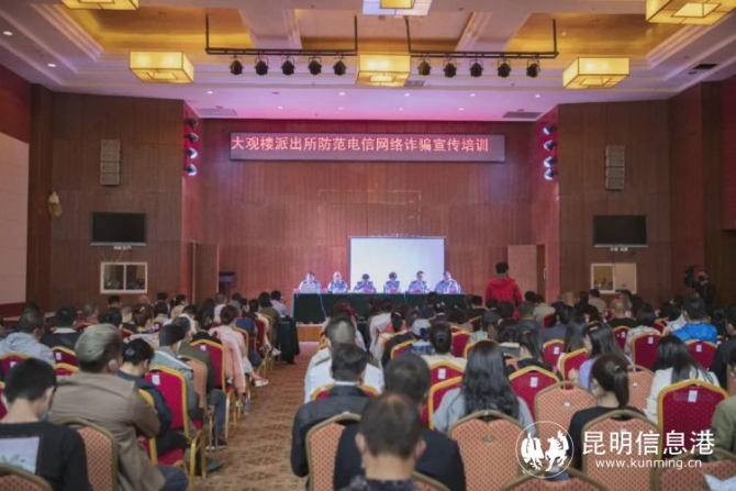 5月27日,西山公安分局在大观楼派出所辖区举行“防范电信网络诈骗宣传培训会”。