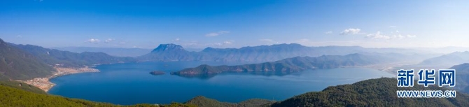 4月18日在云南省丽江市宁蒗县永宁镇拍摄的泸沽湖(无人机全景照片)。新华社记者 胡超 摄