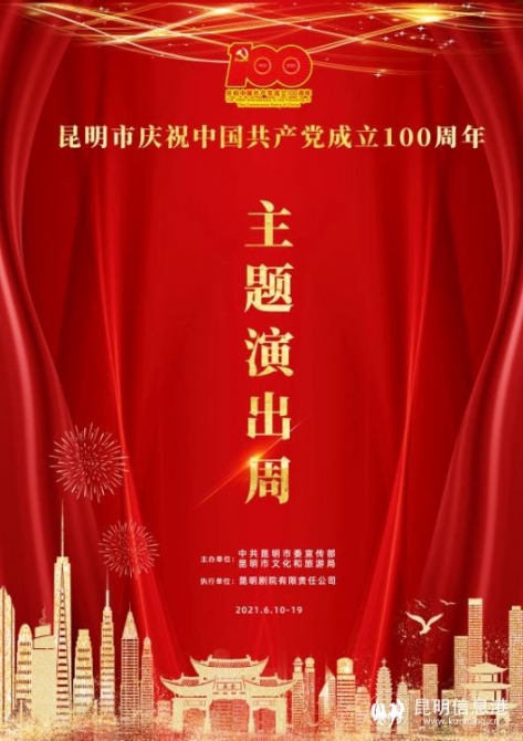昆明信息港讯 记者邓国梅 2021年是中国共产党成立100周年,为营造良好的庆祝氛围,由中共昆明市委宣传部、昆明市文化和旅游局主办,昆明剧院有限责任公司执行的“昆明市庆祝中国共产党成立100周年主题演出周活动”将于6月10日至19日在昆明举行。