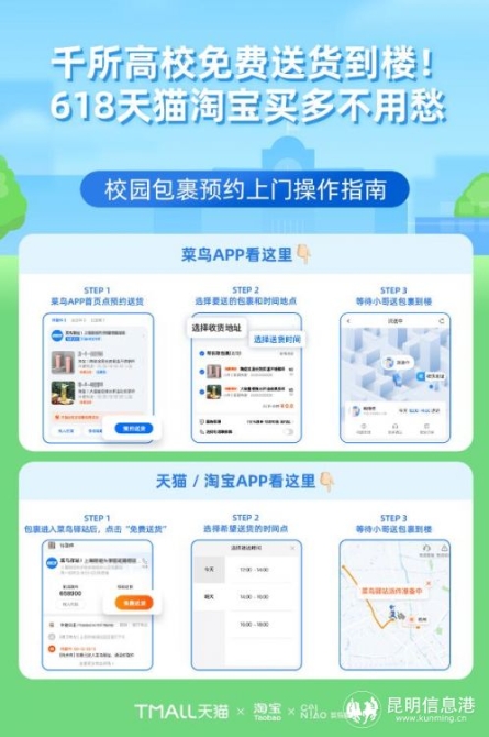 据了解,包裹到达校园菜鸟驿站后,学生即可通过天猫/淘宝的物流详情页和菜鸟APP首页,点击“预约送货”选择意向时间预约包裹派送。此次推出的送货到楼服务将覆盖开通高校的全量淘宝包裹,天猫包裹已覆盖绝大部分,正在陆续推进中。大学生们在宿舍躺收包裹的期待,即将在此届天猫618实现。