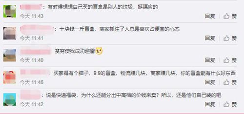 此外,针对快递盲盒,网友也众说纷纭。有的认为要严厉打击快递盲盒的现象,有的表示想到自己买的盲盒是别人的垃圾,“挺膈应的”,还有的表示快递盲盒的商家正是抓住了人们爱占便宜的心态。