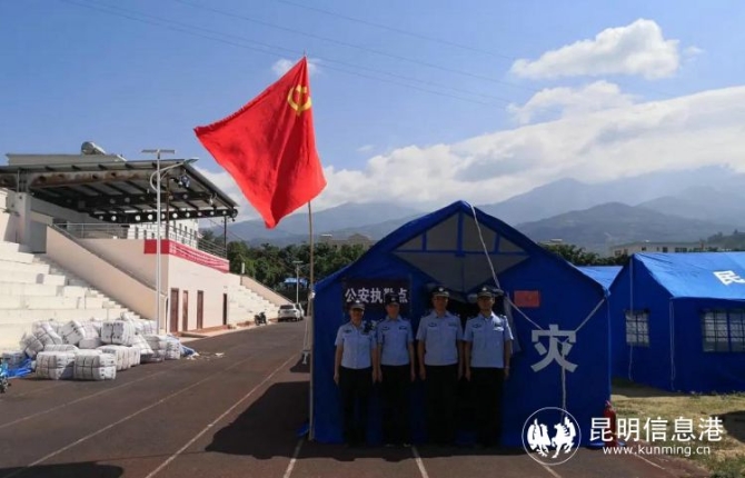 “5·21”地震发生后,大理州漾濞县公安局在漾濞一中安置点设置公安执勤点,安排警力24小时值守,配合开展抗震救灾工作。期间,协助搭建帐篷200余顶、安置群众1000余人、师生300余人,全力维护好安置点秩序,为高三学子高考备考保驾护航。