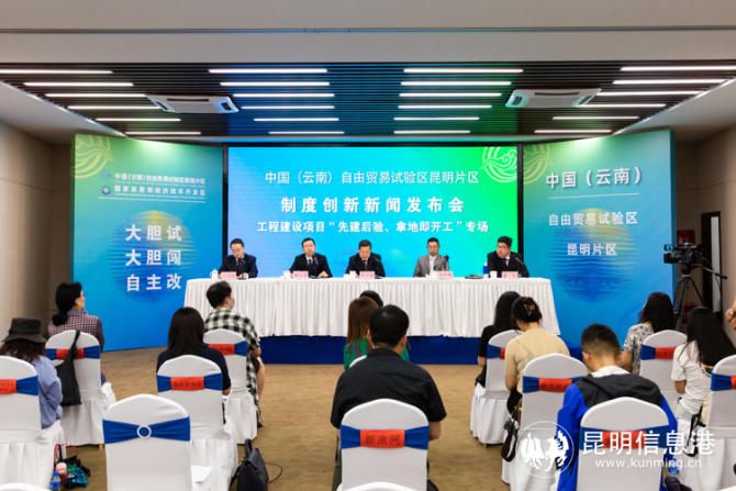 昆明信息港讯 记者高菁徽 通讯员李依阳 5月31日,据中国(云南)自由贸易试验区昆明片区工程建设项目“先建后验、拿地即开工”专题新闻发布会称,自贸试验区昆明片区探索实行“先建后验”管理新模式,深化落实“放管服”探索改革,破除审批制度藩篱,为企业抢时间,为审批流程再“瘦身”,提高压减审批的“含金量”。
