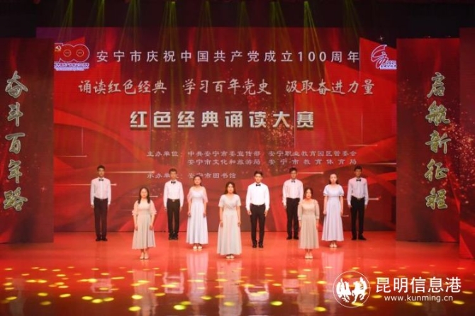 昆明信息港讯 记者杨雁 值庆祝中国共产党成立100周年之际,各单位纷纷组织大合唱比赛、群众唱红歌活动。5月31日晚,在安宁会堂,一场别开生面的红色经典诵读大赛在表演者们声形并茂的表演中展开。最终,安宁市实验学校的参赛节目《星星之火可以燎原》、安宁市公安局《在烈火中永生》以最高分,夺得一等奖。