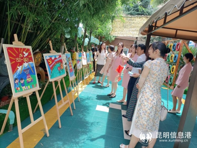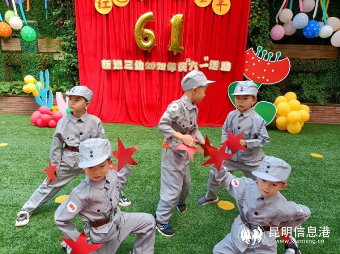 昆明信息港讯 记者黄彩英 通讯员黄雯 缤纷六月,为迎接2021年"六一"国际儿童节,庆祝中国共产党建党100周年,弘扬红色文化,引导孩子们树立爱党爱国意识,让孩子们度过一个快乐而有意义的节日,6月1日,盘龙区新迎第三幼儿园开展了以“红色精神润童心”为主题的庆“六一”活动。