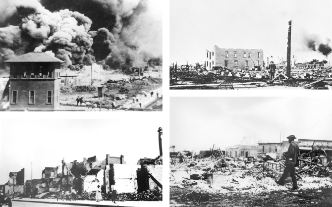 “塔尔萨大屠杀”中格林伍德社区浓烟滚滚