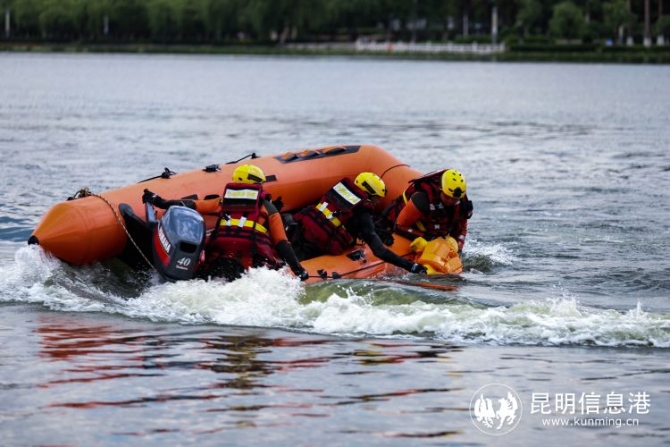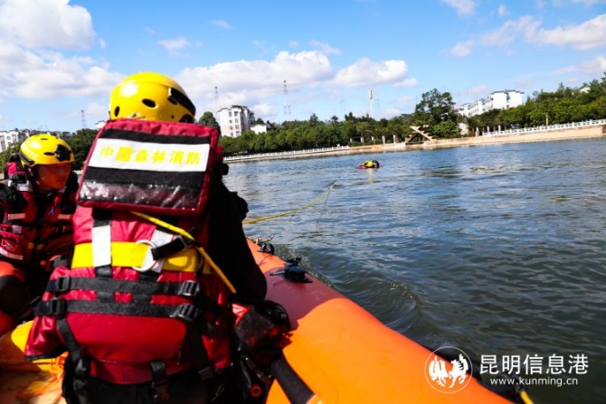 昆明信息港讯 记者合宇聪 通讯员沈勇 伏聪 记者从云南森林消防总队特勤大队获悉,6月1日,安宁市举行“2021年生产安全事故政企联动综合应急演练”,相关部门协同配合,按照应急预案开展演练。在当天的演练中,该大队担负日月湖水域救援任务。