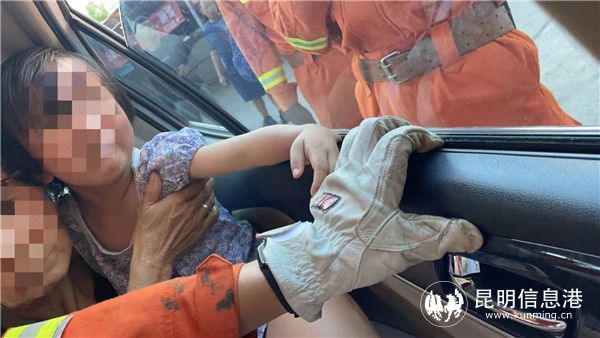 家长降下车窗时致小女手臂被卡缝隙中 安宁消防急速救援