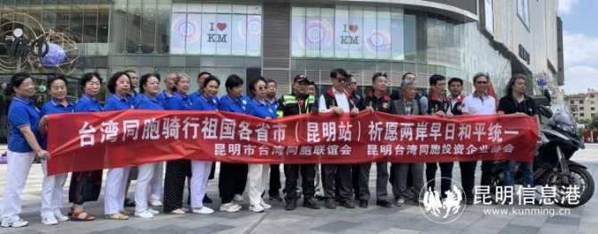 昆明信息港讯 记者张敏 6月2日上午,由昆明市台联、昆明台湾同胞投资企业协会、盘龙区台联共同举办的“台湾同胞骑行祖国各省市(昆明站)祈愿两岸早日和平统一”欢迎仪式在同德广场举行。昆明市台联副会长、昆明台协会常务副会长陈嘉雄出席欢迎仪式并致辞。在昆台胞、台商、台属代表20余人参加了欢迎仪式。