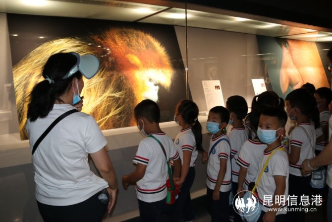 昆明信息港讯 记者甘凌菲 通讯员张露萍 为喜迎COP15在昆召开,提高幼儿对保护生物多样性的认识和参与度,了解人与自然和谐共生的重要性,6月1日,在国际儿童节到来之际,盘龙区茨坝幼儿园组织全体师生走进云南省博物馆,参观了“消失中的世界--它们与我们的未来”濒危动物摄影展。