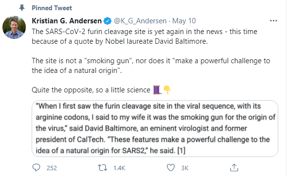 让人敬佩的是,安德森再次站了出来,在他的个人社交账号上发帖说道:“就像之前多次讲过的那样,我们曾经认真地考虑过病毒来自实验室的可能性。但是,重要的新数据,大量的分析以及许多的探讨让我们最后得出了我们论文中(新冠病毒来自自然界)的结论。”