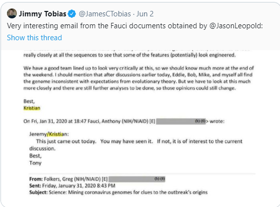 “(我在2月1日发给福奇的)那封邮件,恰恰体现出了一种科学的进程”,他说。