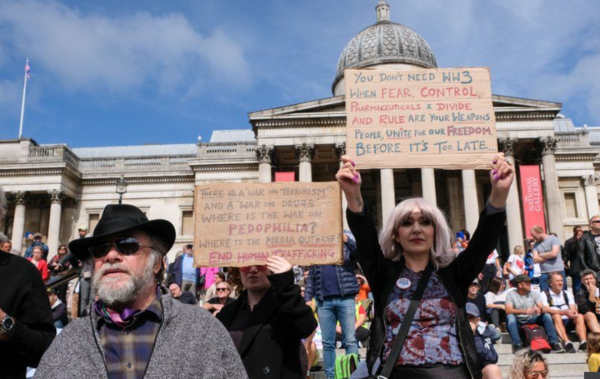 公开资料显示,“匿名者Q”是一个极具右翼保守主义和民粹色彩的政治阴谋论团体。这个诞生于美国的组织不仅长期宣称美国等西方国家的政府被一伙由克林顿和索罗斯家族支持的“恋童癖”犯罪团伙控制,而且在新冠疫情爆发后,他们还在不断散布着诸如“新冠病毒是比尔盖茨和中国人一起制造出来的,为的是逼人们都去打疫苗,好对人类进行精神控制”等阴谋论。