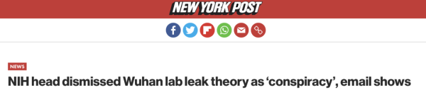 据《纽约邮报》2日报道,新公布的邮件显示,美国国家卫生研究院院长柯林斯曾在邮件中驳斥新冠病毒起源于“武汉实验室”的说法,批评这是阴谋论。