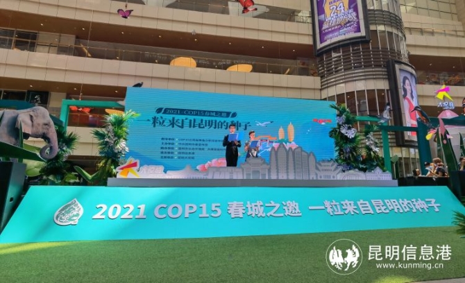 昆明信息港 记者何早阳 周姝雅 寄出一粒来自昆明的种子、参加环保沙龙、加入城市志愿者、面塑小动物、共绘生物多样性画卷……6月5日环境保护日当天,“2021COP15春城之邀——一粒来自昆明的种子”活动启动仪式及生物多样性文化集市在大悦城城市会客厅以一场大型的生物多样性知识普及活动拉开序幕。