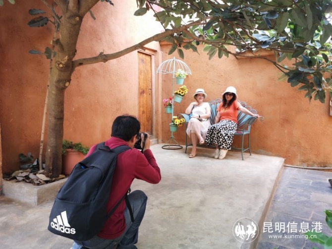 当天上午十时许,40多名彩龙网友来到位于昆明长水国际机场以西9公里的严家庄民宿合院,进行“最近的远方”昆明民宿与精品酒店推荐短视频挑战赛之严家庄民宿外拍摄影活动。