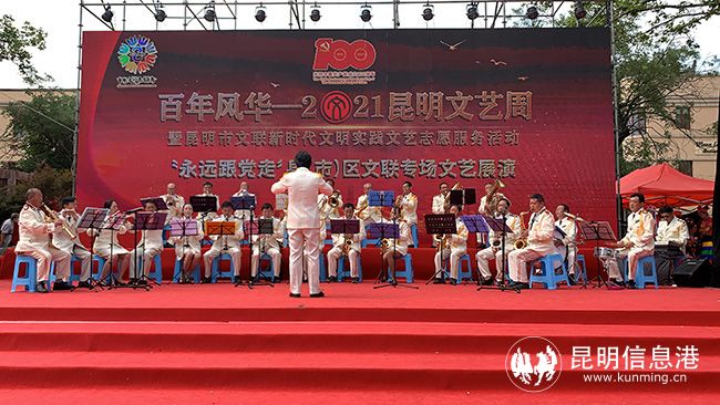 昆明信息港讯 记者孙红亮 6月6日下午,“百年风华——2021昆明文艺周”暨昆明市文联新时代文明实践文艺志愿服务活动·“永远跟党走”县(市)区文联专场文艺展演在永道街小广场举行。