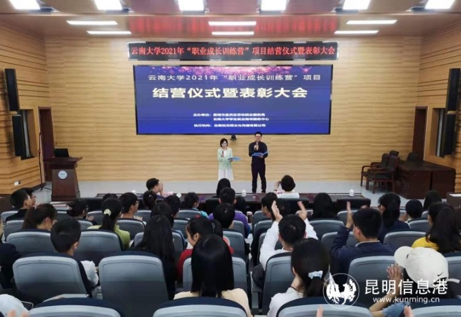 昆明信息港讯 记者郭成明 6月6日,为期一个月的云南大学2021年“职业成长训练营”项目结束了全部课程,于当天下午在云南大学呈贡校区学生会堂举行结营仪式。