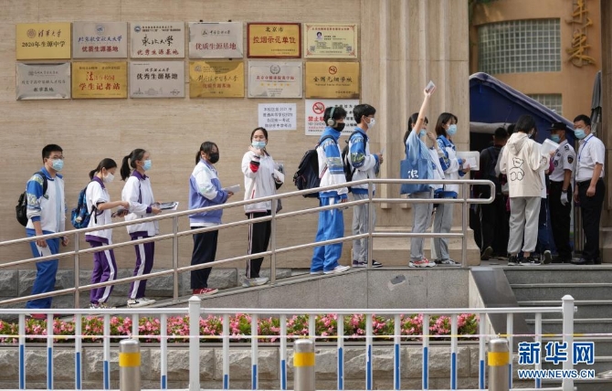 6月7日,考生在北京市陈经纶中学考点排队进入考场。新华社记者 鞠焕宗 摄