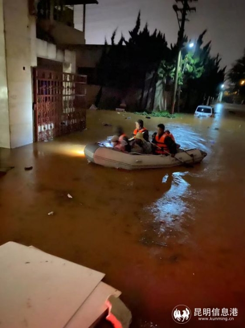连夜暴雨致昆明部分地区被淹 五华消防冒雨营救被困群众28人