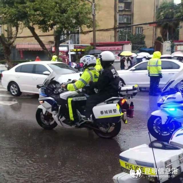 与此同时,西山巡特警大队骑巡滇池路巡逻组,在云纺门口接到参加高考的一名考生求助,该考生称:本来打车去参加考试的,但现在堵车了,马上就要开始考试,请求骑巡队员的帮助。骑警队员立即采取措施,通过实施紧急护送的工作预案,在12分钟内,将该名考生从云纺门口紧急送到昆明市第十二中学。