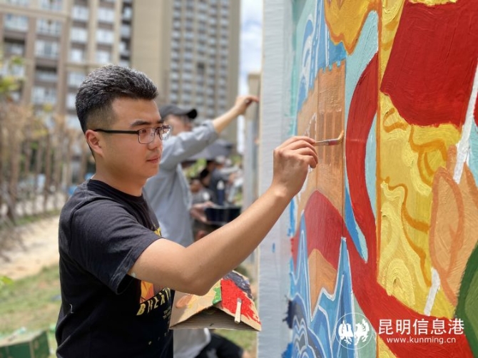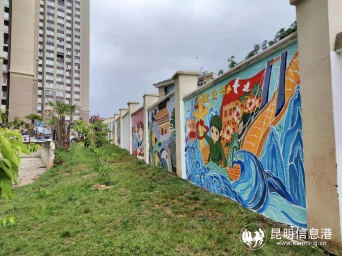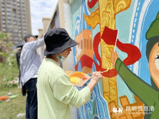 昆明信息港讯 记者段佳琪 6月8日,呈贡区营盘社区开展庆祝中国共产党成立100周年系列活动——“同绘中国情、共筑营盘美”主题墙绘。