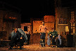 苍凉的城墙在舞台上斜立,一个孤独幼小的灵魂悄然立于石阶,他的吟唱,召唤出古老的“复仇”故事。程婴、屠岸贾、程勃、公孙杵臼、公主等一众人物定格于画框之中,缓缓“移”向舞台,再次走入历史的风沙……