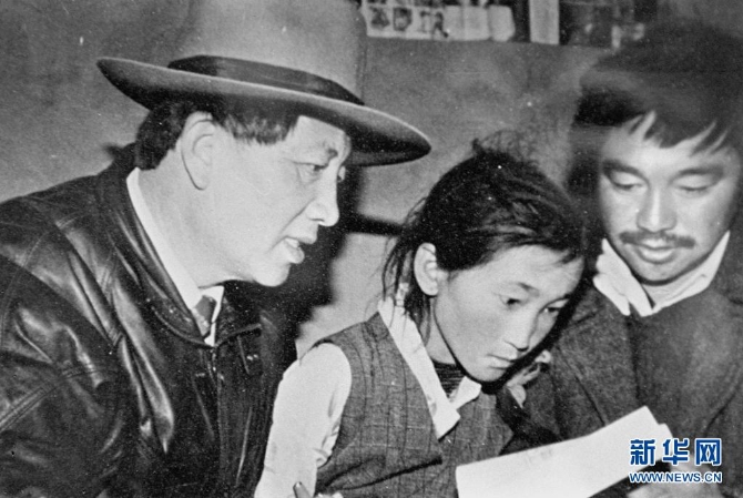 在西藏工作期间,孔繁森(左)在辅导藏族儿童读书(资料照片)。新华社发