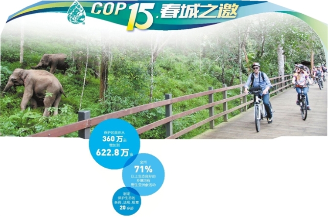 目前,西双版纳傣族自治州的自然保护区实际面积从原来的360万亩增加到622.8万亩,制定保护生态的条例、法规、规章20多部,2008年投资约700万元在野象谷内建立了国内第一个亚洲象繁育基地,全州71%以上生态良好的乡镇均有野生亚洲象活动。2017年9月,西双版纳州荣获全国首批、也是全省唯一的“国家生态文明建设示范州”称号。