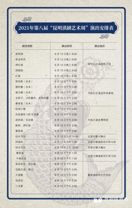 附:2021年第八届“昆明滇剧艺术周”演出安排表