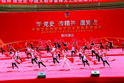 “学党史 传精神 跟党走”——中国文联学雷锋文艺志愿服务先锋队在西安慰问演出。李龙盛摄/光明图片