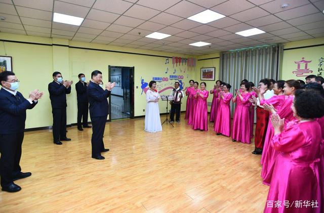 6月7日至9日,中共中央总书记、国家主席、中央军委主席习近平在青海考察。这是7日下午,习近平在西宁市城西区文汇路街道文亭巷社区舞蹈室,观看退休人员歌曲排练。新华社记者 谢环驰 摄