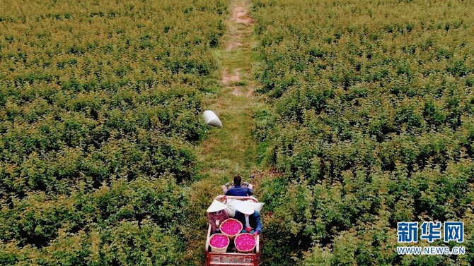农户正在运输采摘好的玫瑰花(资料图)。新华网发(供图)