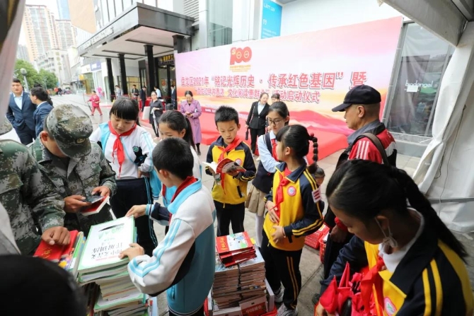 昆明信息港讯 记者郭成明 为让辖区居民享受到更加充实、更为丰富、更高质量的精神文化生活,6月11日上午,“铭记光辉历史 传承红色基因”暨“盘龙江畔书香浓 文化阅读惠群众”大型文化惠民活动在盘龙区联盟街道白云路“盛都梦工厂少儿主题产业城”启动。活动旨在倡导全民阅读,提高文化自信,建设书香社会,积极营造“好读书、读好书、善读书”的浓厚氛围,加快构建高质量盘龙公共文化服务体系,打造“文萃盘龙”“最美一公里”公共文化服务圈,让市民真正享受到便捷、高效、均等的文化服务。