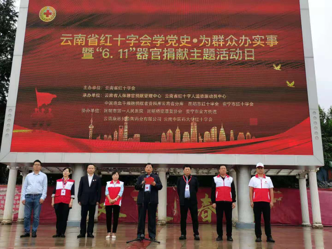 此次活动由云南省红十字会主办,省人体器官捐献管理中心、省红十字人道资源动员中心、中国造血干细胞捐献者资料库云南省分库、昆明市红十字会、安宁市红十字会承办,昆明市第一人民医院、昆明癌症康复协会红十字绿洲艺术团、安宁市金方街道、云南康恩贝希陶药业有限公司、云南中医药大学红十字会协办。