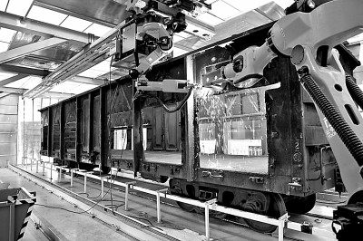 安徽合肥,报废铁路货车被机器人自动拆解,通过深加工变成农机具、五金件等产品。 新华社发