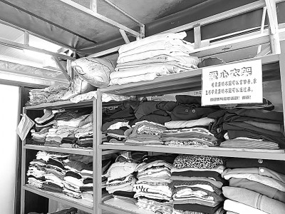 海口市美兰区白沙门环保教育站,市民将不需要的衣物放到爱心衣架,供需要的人取用。 本报记者 李睿宸摄/光明图片