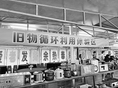 在海口市美兰区白沙门环保教育站,市民参与旧物循环利用活动。 本报记者 李睿宸摄/光明图片
